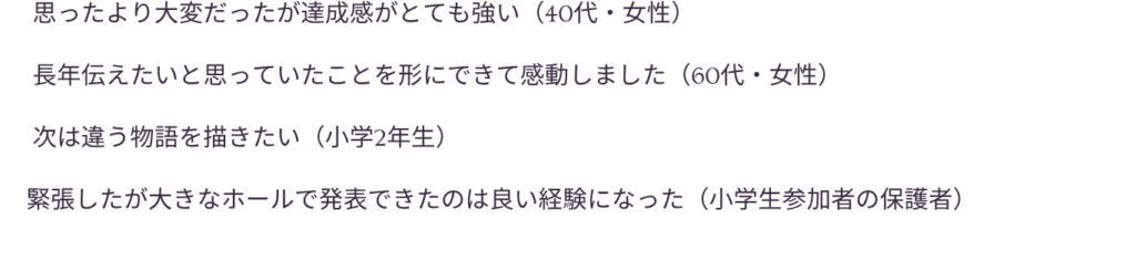 コンサート当日に、上製本された絵本が届きます。舞台で朗読発表します。(希望者のみ)